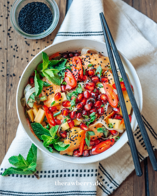 Super einfacher Reisnudelsalat mit extra buntem Gemüse und viel Minze. Perfekt für warme Sommertage.
