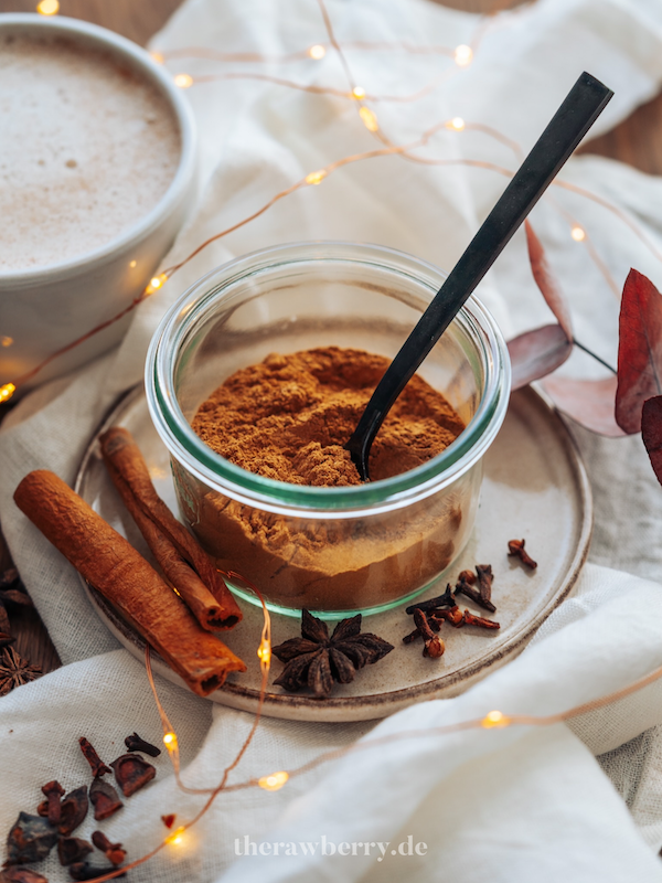 Kennt ihr Chai Gewürz? Er ist eine südostasiatische Gewürztee-Zubereitung und auch hier bei uns vor allem als Chai Latte (mit Milch) sehr beliebt. Ich liebe einen guten Chai Latte auch so sehr. Vor allem mit Hafermilch!