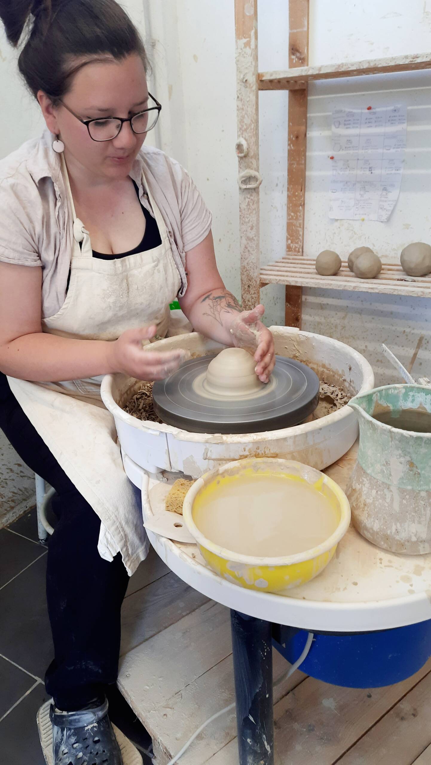 Ran an den Ton und ran an den Drehteller! Ihr hättet mein Grinsen sehen sollen!! Um Abläufe und Dinge wirklich zu verstehen, will ich immer alles ganz genau wissen und am liebsten eben auch anfassen und selber machen!