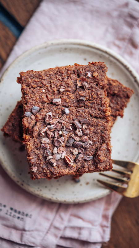 Super einfache Chocolate Baked Oatmeal Brownies. Komplett vegan, glutenfrei und proteinreich. Für deinen nächsten Frühstücks Meal Prep.