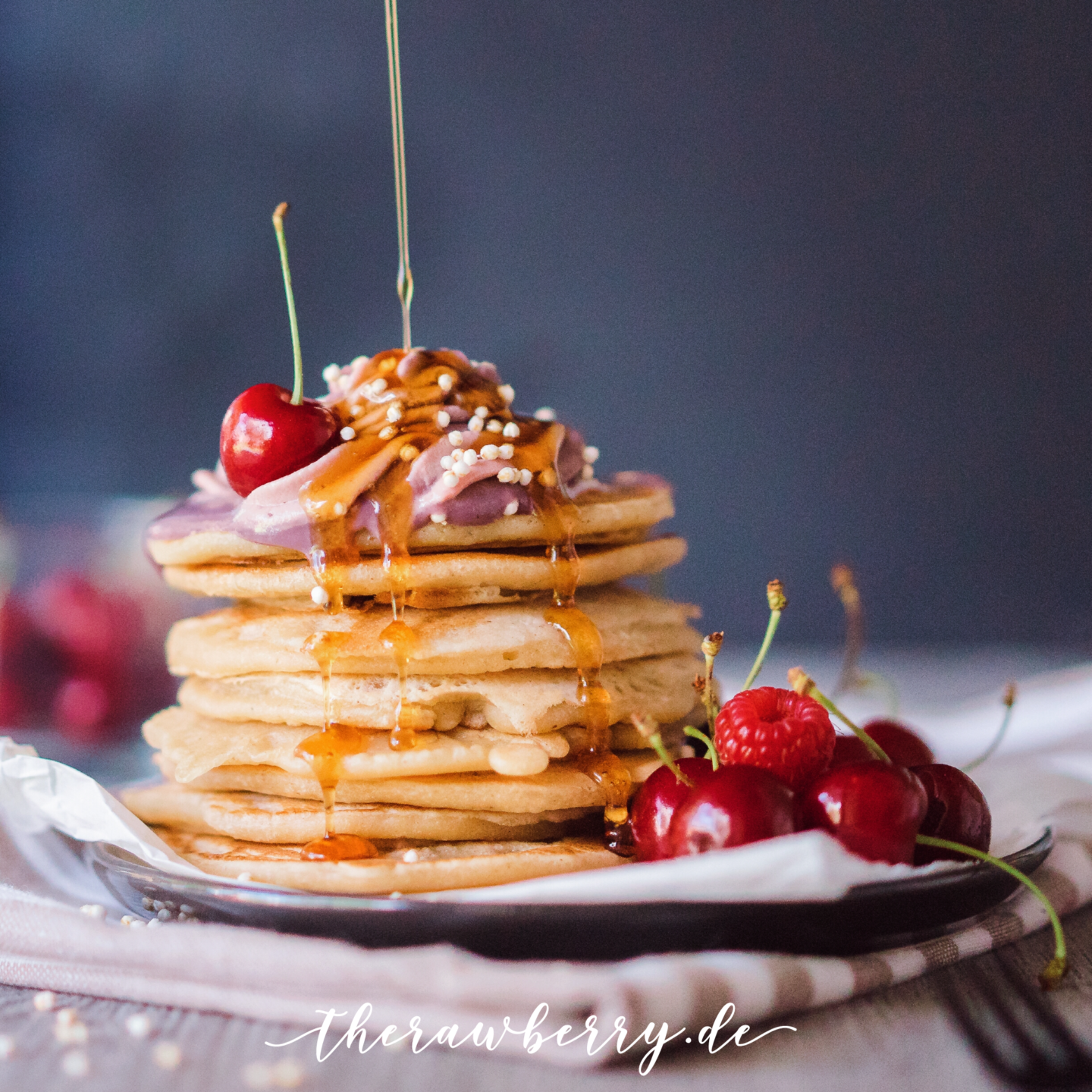 Bei uns zu Hause gibt es eine Tradition: Fast jeden Sonntag genießen wir ein fluffiges Pfannkuchenfest zum Frühstück. Mit ordentlich vielen Beeren, Ahornsirup und Apfelmus – meinem Toppingfavoriten. Aber dieses mal habe ich sie mit einer leckeren Creme getoppt. Die wird einen Tag vorher zubereitet und das Warten lohnt sich auf jeden Fall. ?