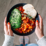 Kartoffen und Karotten abgießen und ebenfalls unter das Chili rühren. Nun abschmecken und servieren. Dafür jede Schüssel mit einer halben Avocado und einer Scheibe Brot toppen. Guten Appetitt!
