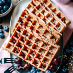 Ich habe meine Waffeln mit Dattelsirup, frischen Blaubeeren und Kirschen serviert.