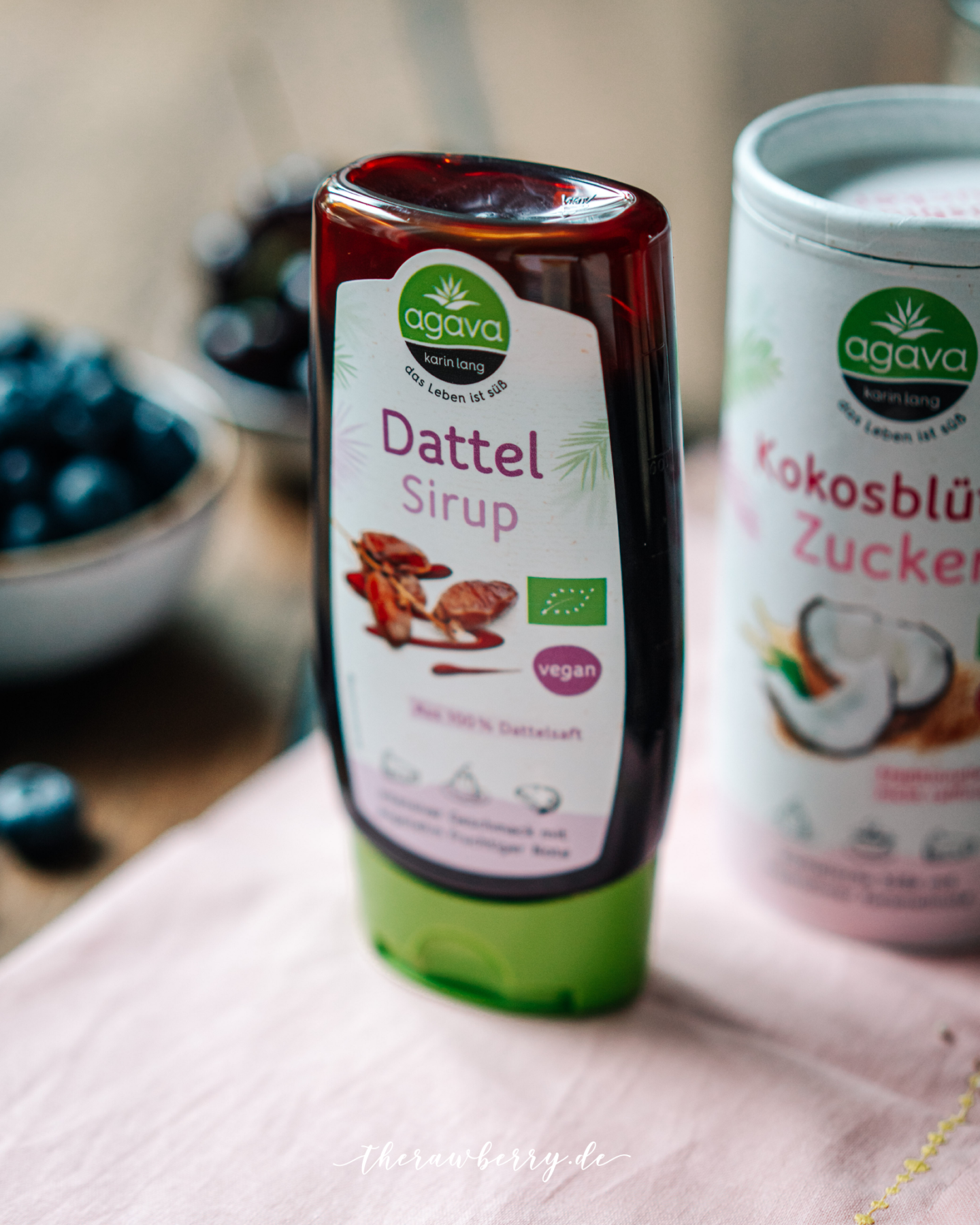 Getoppt sind die Waffeln hier mit Dattelsirup. Der ist auch sehr empfehlenswert.