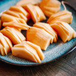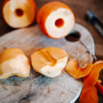 Kakis waschen, schälen, schneiden.