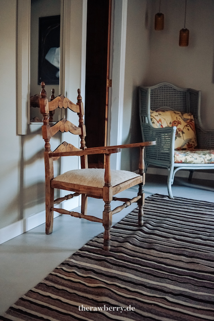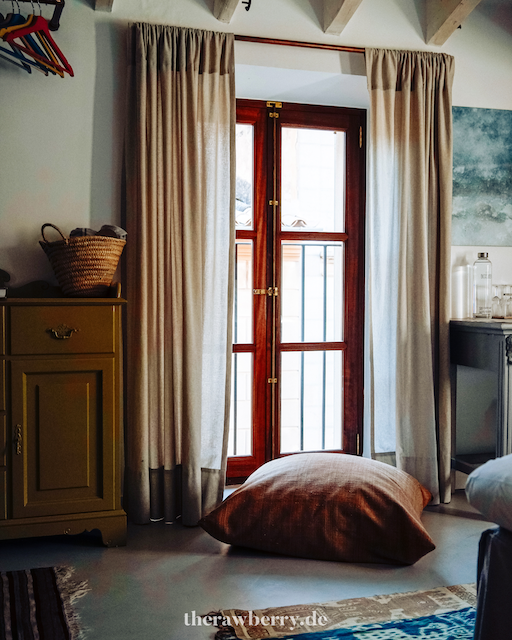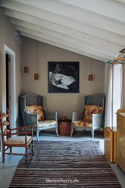 Ein geräumiges Bad mit einer großen Dusche, Sitzmöglichkeiten auf recycelten und antiken Möbeln. Ich konnte mich gar nicht sattsehen. Fast jeden Mittag hielten wir unsere Siesta in diesem Zimmer und wollten gar nicht mehr gehen. Mehr Infos zu den Zimmern und allgemein gibt es übrigens hier: https://ecocirer.com/en/