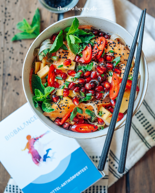 Somit habe ich vorerst auf Gluten, bestimmtes Gemüse sowie Ingwer und Knoblauch verzichtet. Und hätte nicht gedacht, was sich hier eingependeln würde: meine Haut – vor allem im Gesicht – ist viel reiner geworden. Auch die Unreinheiten um die Periode herum blieben dieses Mal aus. Zudem hat sich allgemein ein “ruhigeres” Körpergefühl eingestellt und mein Körper scheint tatsächlich innere, physische Ruhe zu haben. Ich kann aktuell ziemlich gut nachvollziehen, wie die Lebensmittel mit einem hohen Antikörperwert, einen gewissen Stress verursacht haben. Das ist ein bisschen wie ein Splitter, den man schon so viele Jahre hat, dass man ihn gar nicht mehr wahrnimmt. Aber ist er einmal weg – wow! Man wird ihn nicht vermissen und freut sich einfach über das losgelöste Gefühl.