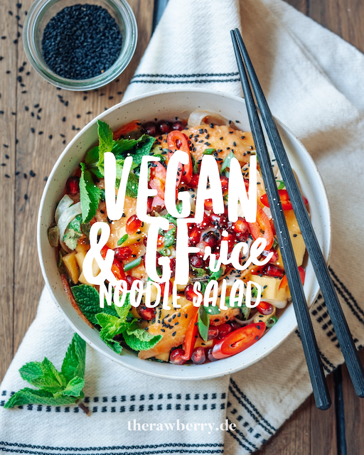 Deshalb habe ich natürlich auch meine Ernährung angepasst und ein Rezept davon möchte ich euch natürlich nicht vorenthalten. Es ist ein unglaublich leckerer und einfacher, veganer und glutenfreier Reisnudelsalat mit ganz viel Minze und Karotte. Dazu gibt es ein Erdnussbutter Dressing, das zusätzliche Proteine liefert.