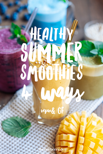 Auf Instagram wurden die letzten Wochen meine Smoothies so sehr gefeiert, dass heute meine vier liebsten veganen und glutenfreien Smoothie Rezepte schön gesammelt für euch auf den Blog kommen. Von Mango, über Blaubeere, grüner Smoothie und einem richtig cooles blauen Smoothie. Keine Sorge, alles ist ganz natürlich gefärbt und ohne Zusätze von irgendwas. Jetzt möchtest du bestimmt wissen, WAS genau den blauen Smoothie blau färbt? Steht alles unten um Rezept.